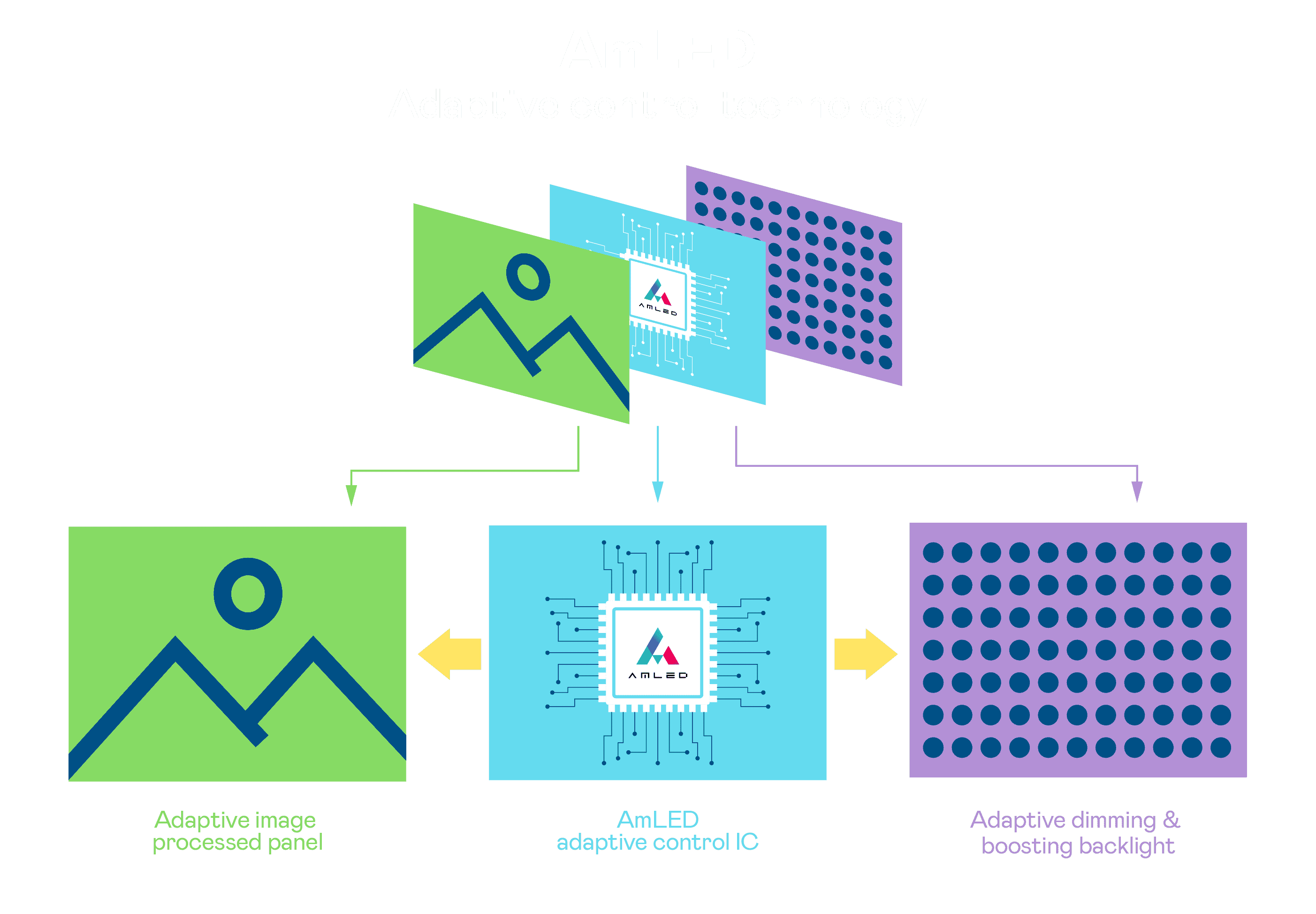 AmLED 具备更省电与低蓝光特性。。。与一般的 LED 背光显示技术相比,,,由于 AmLED 常时处于局部调光状态,,,其功耗仅有前者的 50% 左右,,,同时 AmLED 还具备低蓝光特性,,满足长时间使用的护眼需求。。。。