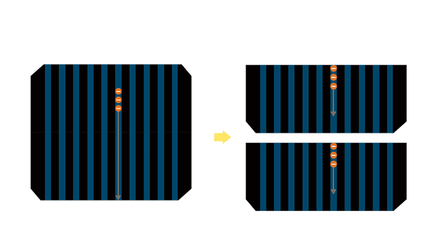 • 多条电极栅结构,,可有效降低外力对于电池的影响,,,,限制电池隐裂 (Micro-cracks) 范围,,,防止电流传输路径 (Current distribution) 之损坏进一步扩大。。。。
