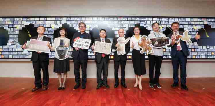 Wepay携手创利空间为故宫建置的智慧文物互动导览墙及轮播墙,,,今日正式启用。。(左四:Wepay新事业暨投资管理总部副总经理杨本豫、、、右四:故宫博物院院长吴密察、、右三:太极影音董事长黄宝云)